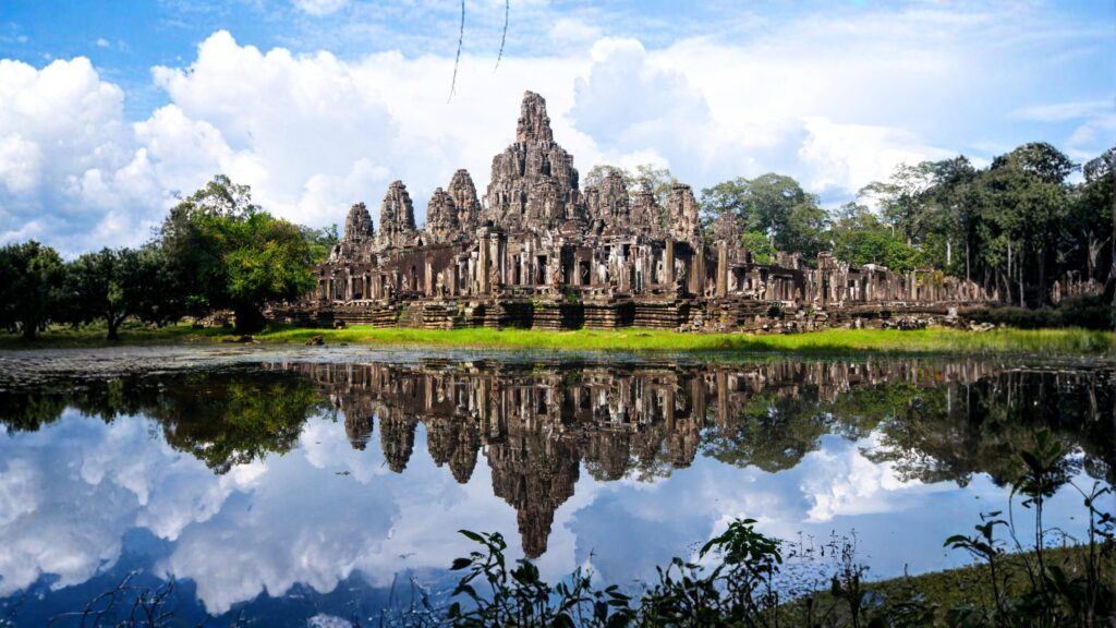 After breakfast, visit the South Gate of Angkor Thom, a 3 km² walled and moated city, last capital of the Angkorian Empire and masterpiece of King Jayavarman VII. Walk along the causeway depicting the Churning of the Ocean of Milk. Explore Bayon Temple, Terrace of the Elephants, Baphuon, Phimeanakas, and Terrace of the Leper King. Continue to Ta Prohm, the ‘Indiana Jones’ temple, where giant tree roots intertwine with centuries-old ruins. After lunch, visit Angkor Wat, the world’s largest religious monument, built in the 12th century by King Suryavarman II. Admire its symbolic architecture, intricate bas-reliefs, five towers, galleries, and Apsara carvings. End the day with sunset at Phnom Bakheng, enjoy Apsara Dance with dinner, and overnight stay in Siem Reap.